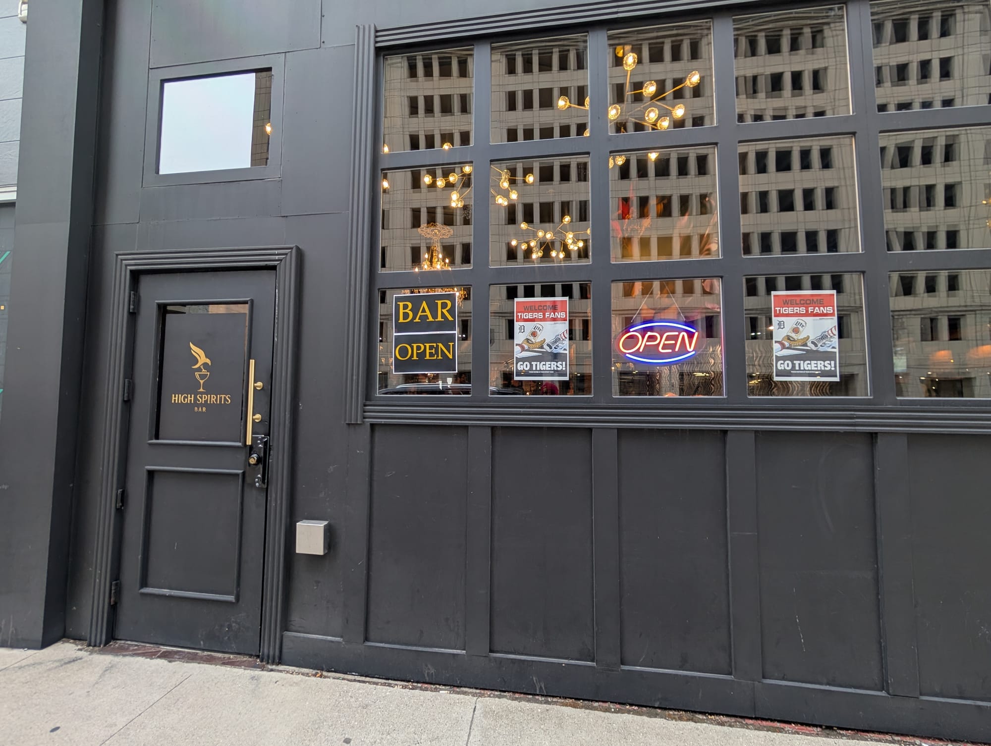 As Opening Day faded into the night, I noticed a vacant commercial space in Downtown Detroit come back alive as the new High Spirits bar soft opened.