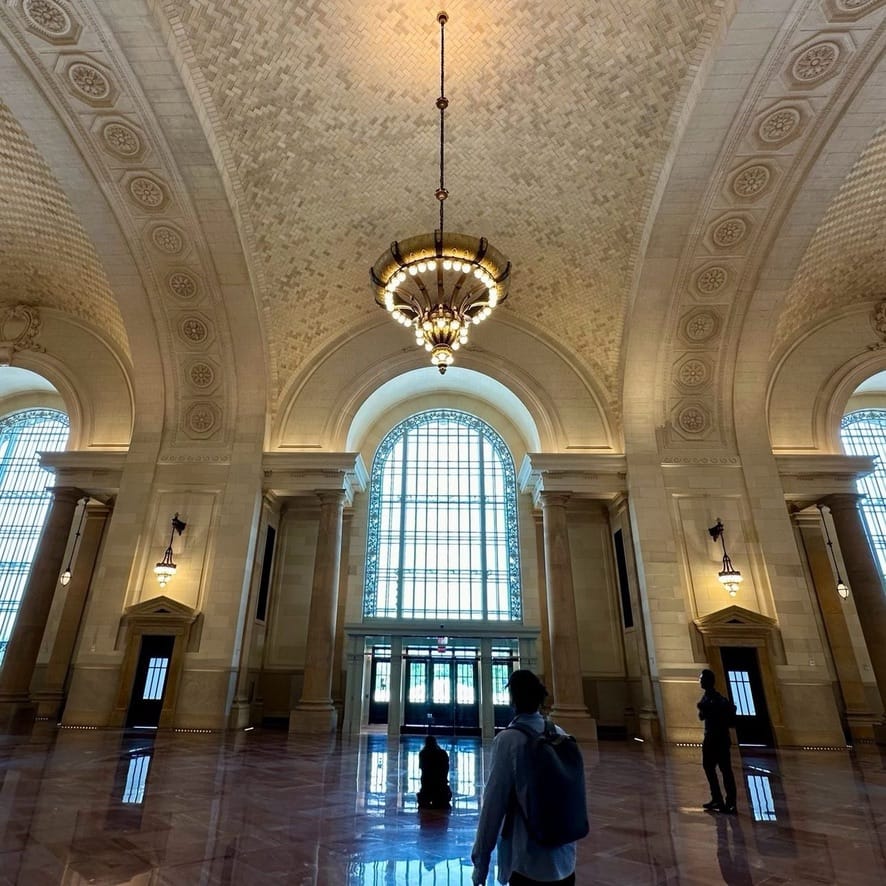 I wanted to make noises because it would echo so much, and wishing I had brought some pans to bash around. I remember the grand lobby feeling like a drafty old house that hadn't gotten the love it deserved.