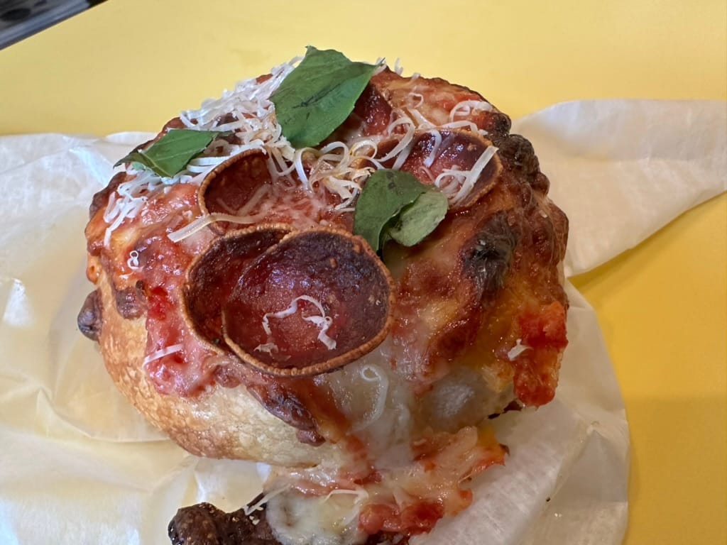 First, the Pizza bialy. People love the concept of pizza bagels — probably thanks to frozen-food favorites like Bagel Bites — but this Bialy is in a league of its own.