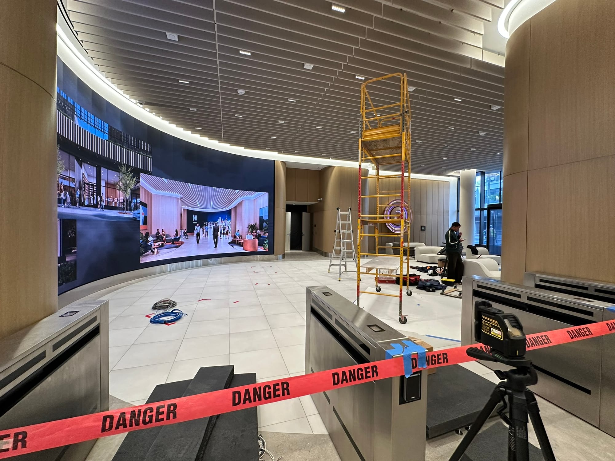 It's still a construction site. Although Bedrock's work is done, it's time for the tenants to get their spaces finished out.