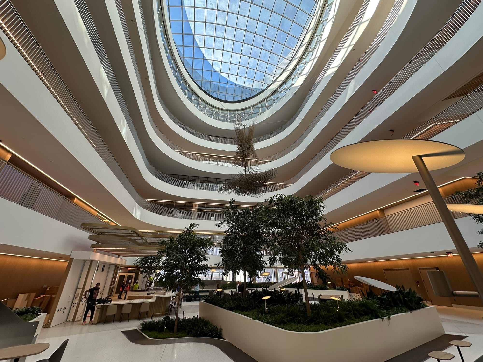 So we entered through the loading dock and went up five floors to a common tenant-centered atrium with one of the larger skylights I've seen.