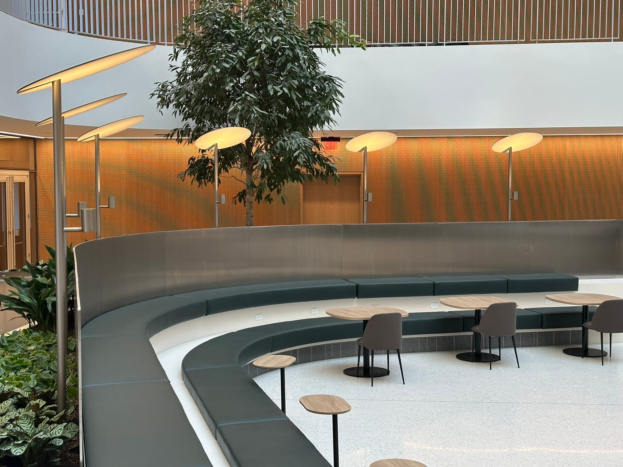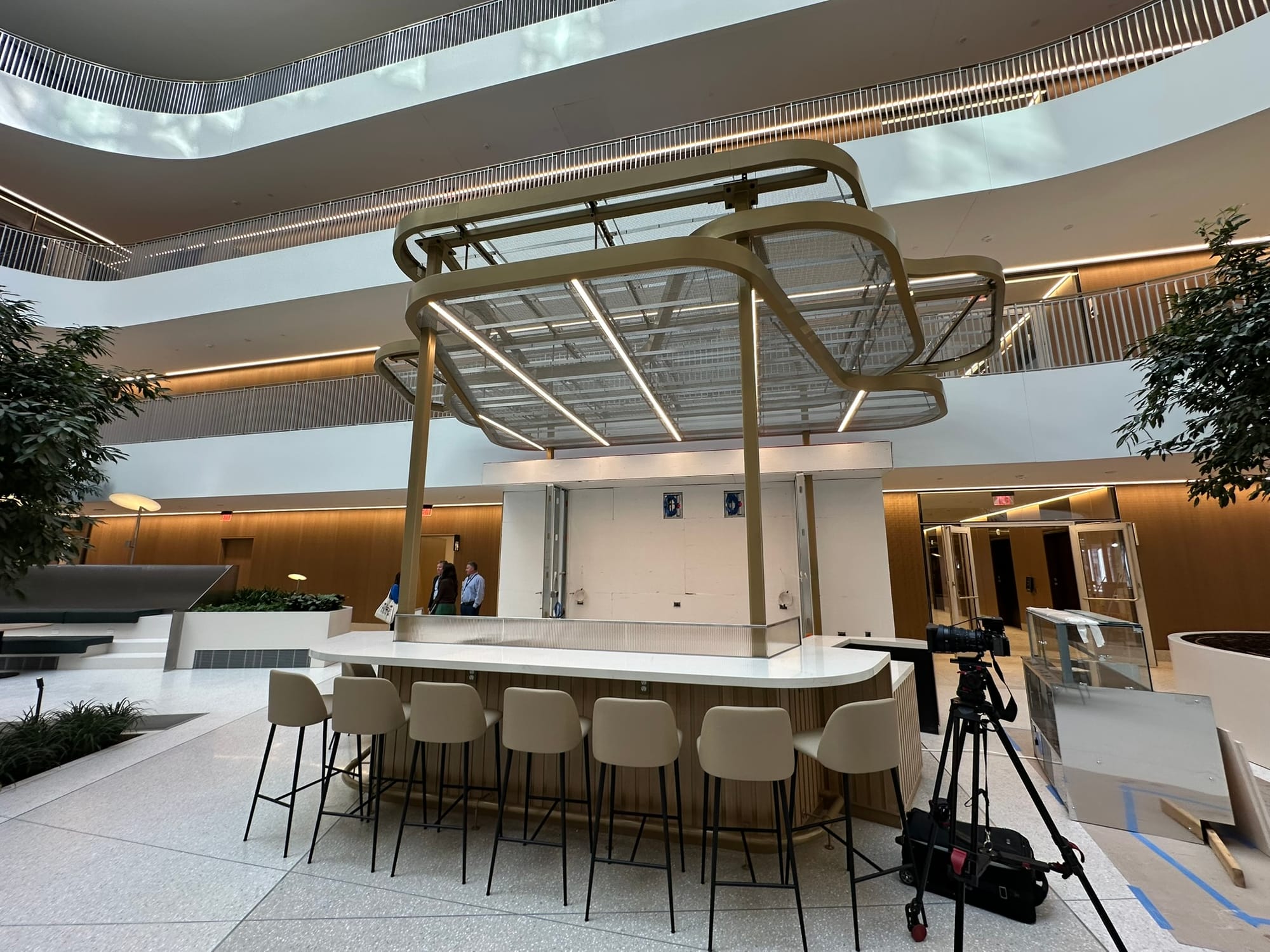 Inside that will be an atrium cafe with hot and cold drinks with healthy grab and go meals — still under construction — for tenants.