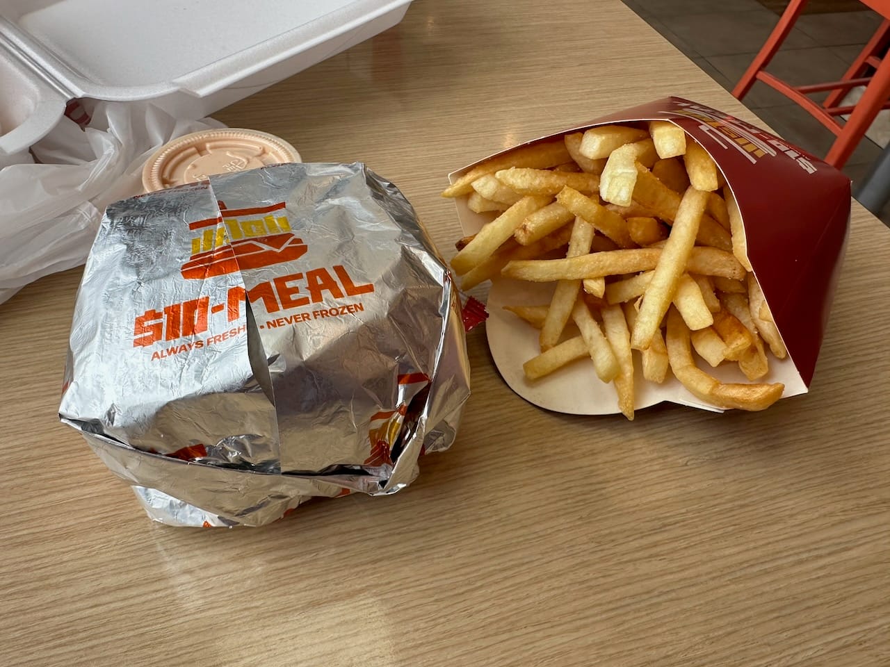 The fries were well-executed — crisp on the outside, soft on the inside in a classic fast-food way. You get ketchup, but if you have the dip, we dip.