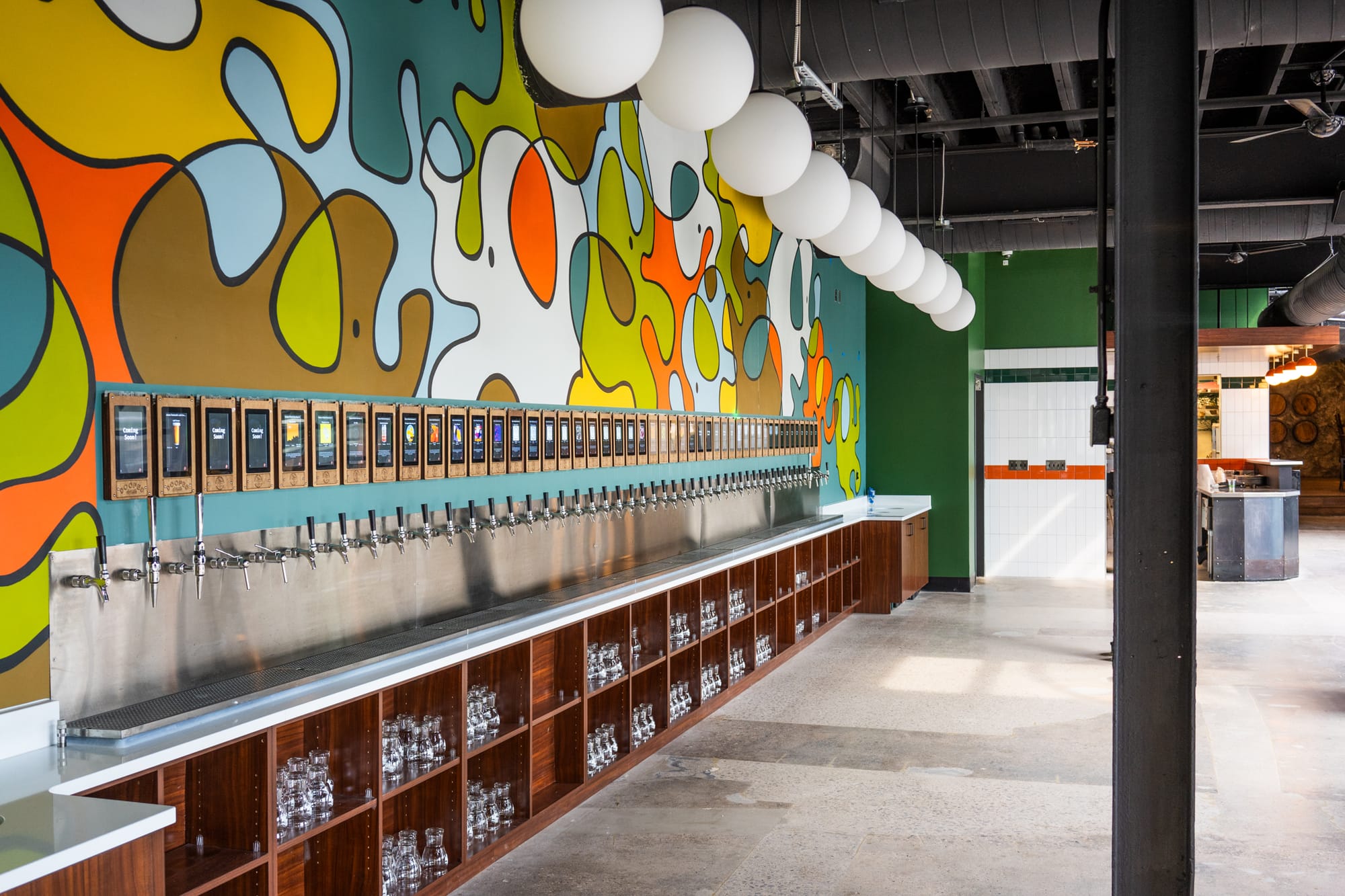 The new spot will feature 50 self-serve taps with beers from EMBC, cider, wine, and a Dooped Donuts cafe with a robotic barista.