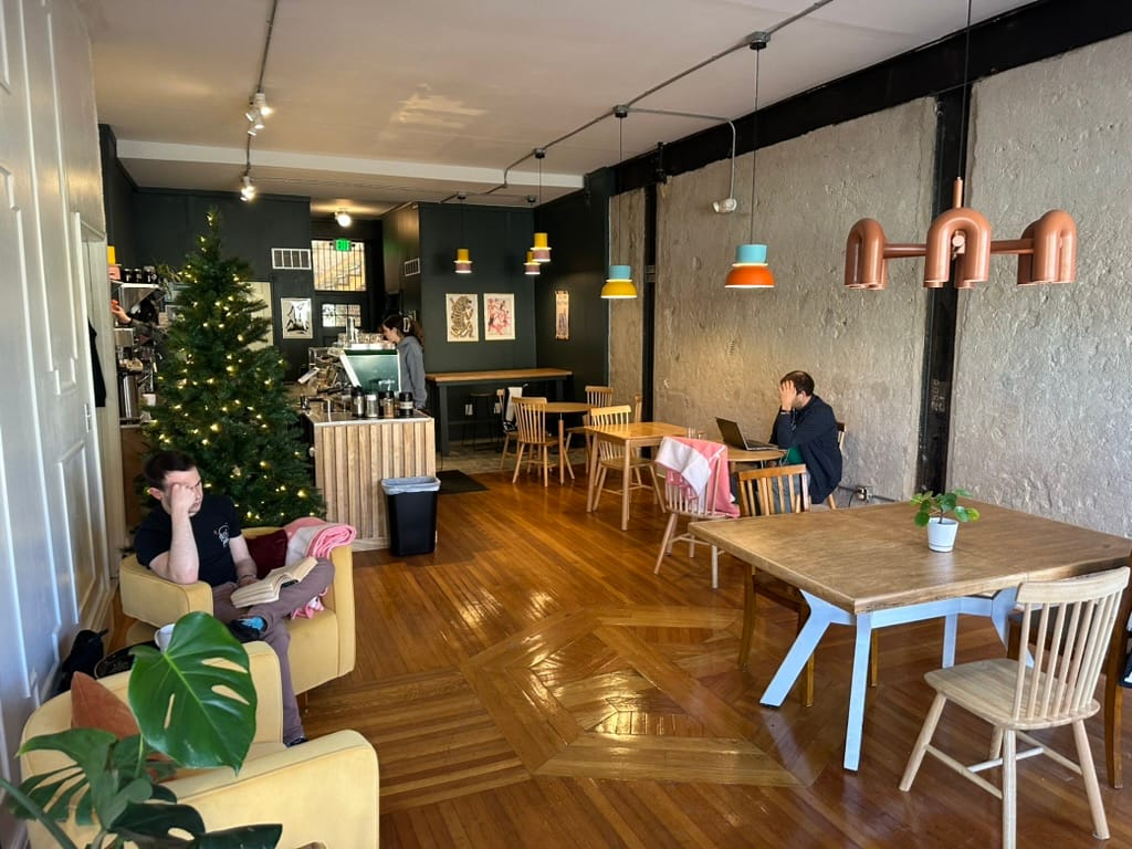 The lattes and pastries we had were solid, and the vibes were chill and welcoming. I personally appreciate that the seating isn't the standard set that seems to come with every coffee shop nowadays, and the lighting fixtures fit the space well.