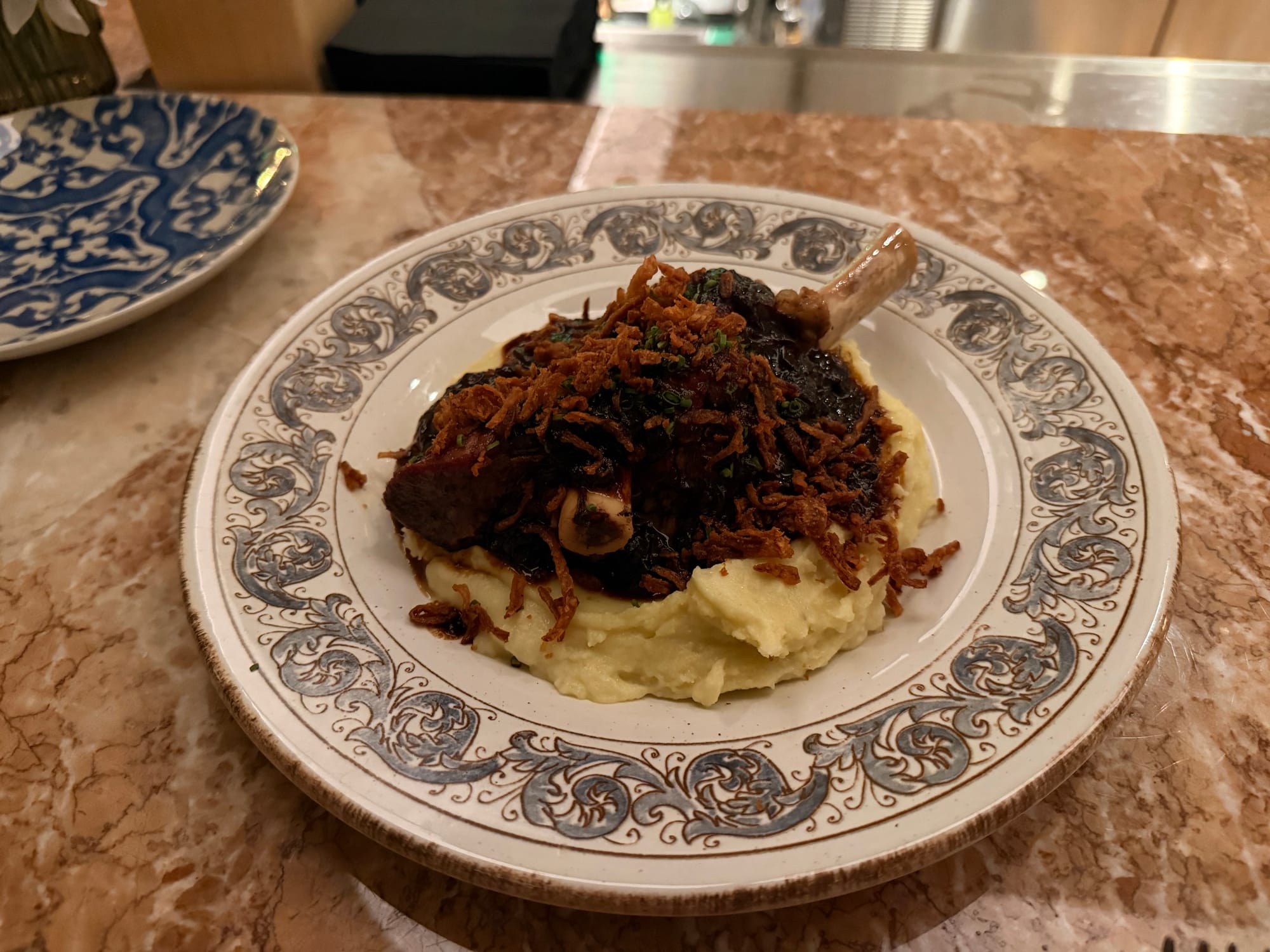 The slow-cooked lamb shank was glazed with caramelized onions and Marsala fortified wine, served over olive oil whipped potatoes, and topped with crispy fried onions. The lamb was tender, the sauce full of flavor, and the crispy onions the right balance of texture. That plate went back to the kitchen empty save for the bone.