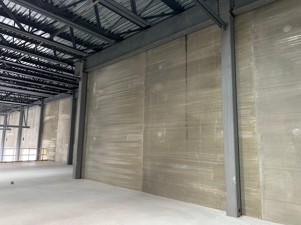 The buildings themselves are made of large pre-fabricated panels, that can be a foot thick, with an outer layer, an insulation layer, and an inner layer.