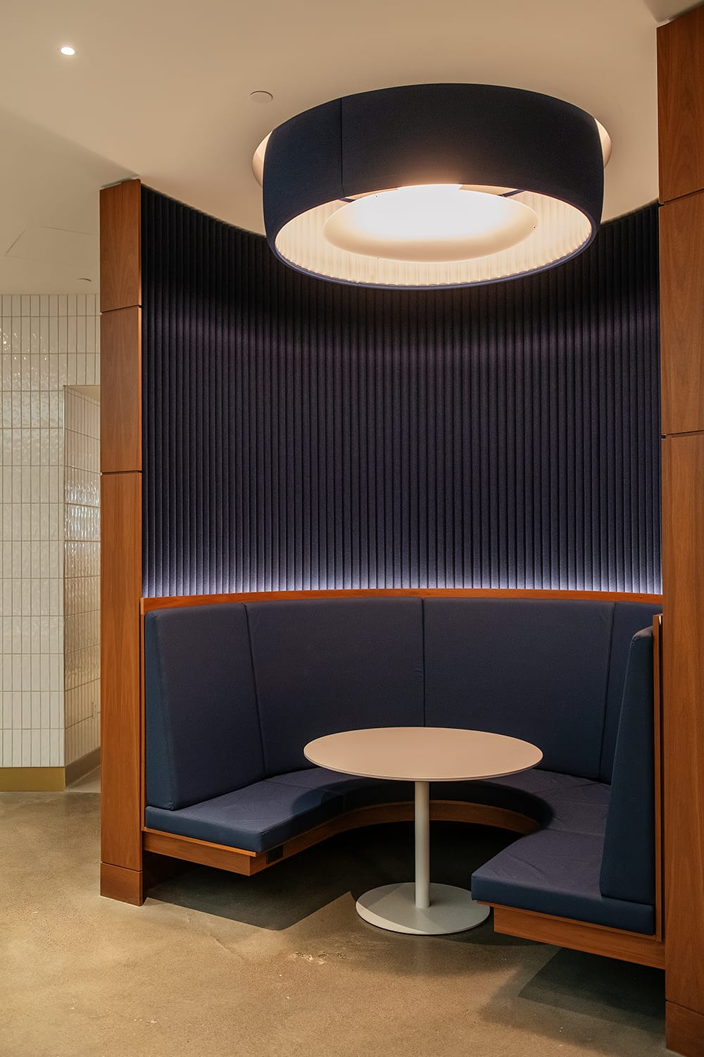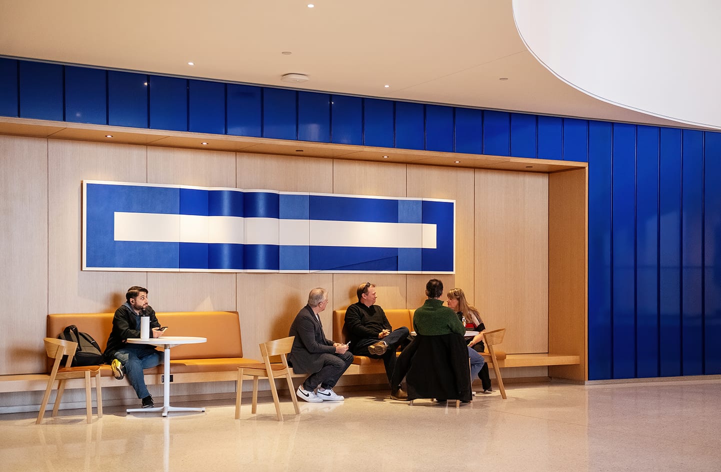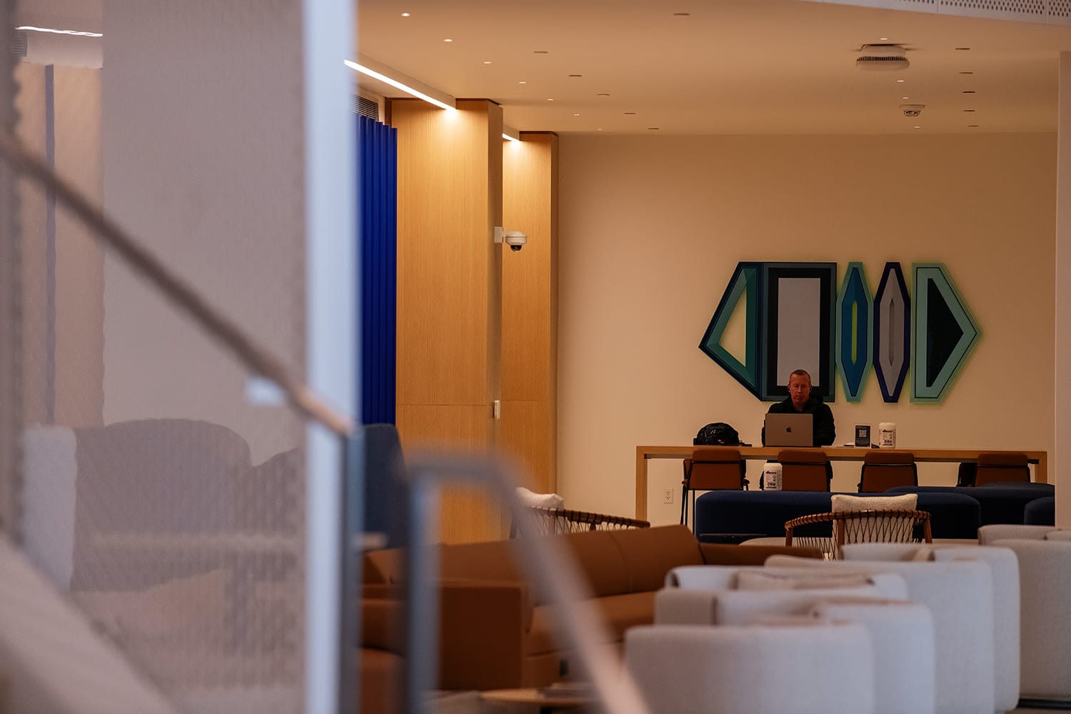 We arrived at the employee entrance, and the first things I noticed were the textures and the art that’s tastefully woven into the building’s design.