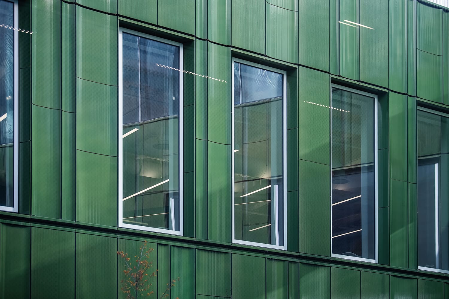 For those elements here, they use terracotta of different colors. Similar to many of the historic buildings in Detroit — and could be interpreted as a nod to working with clay, as they still do in the design department to perfect the designs of new vehicles.
