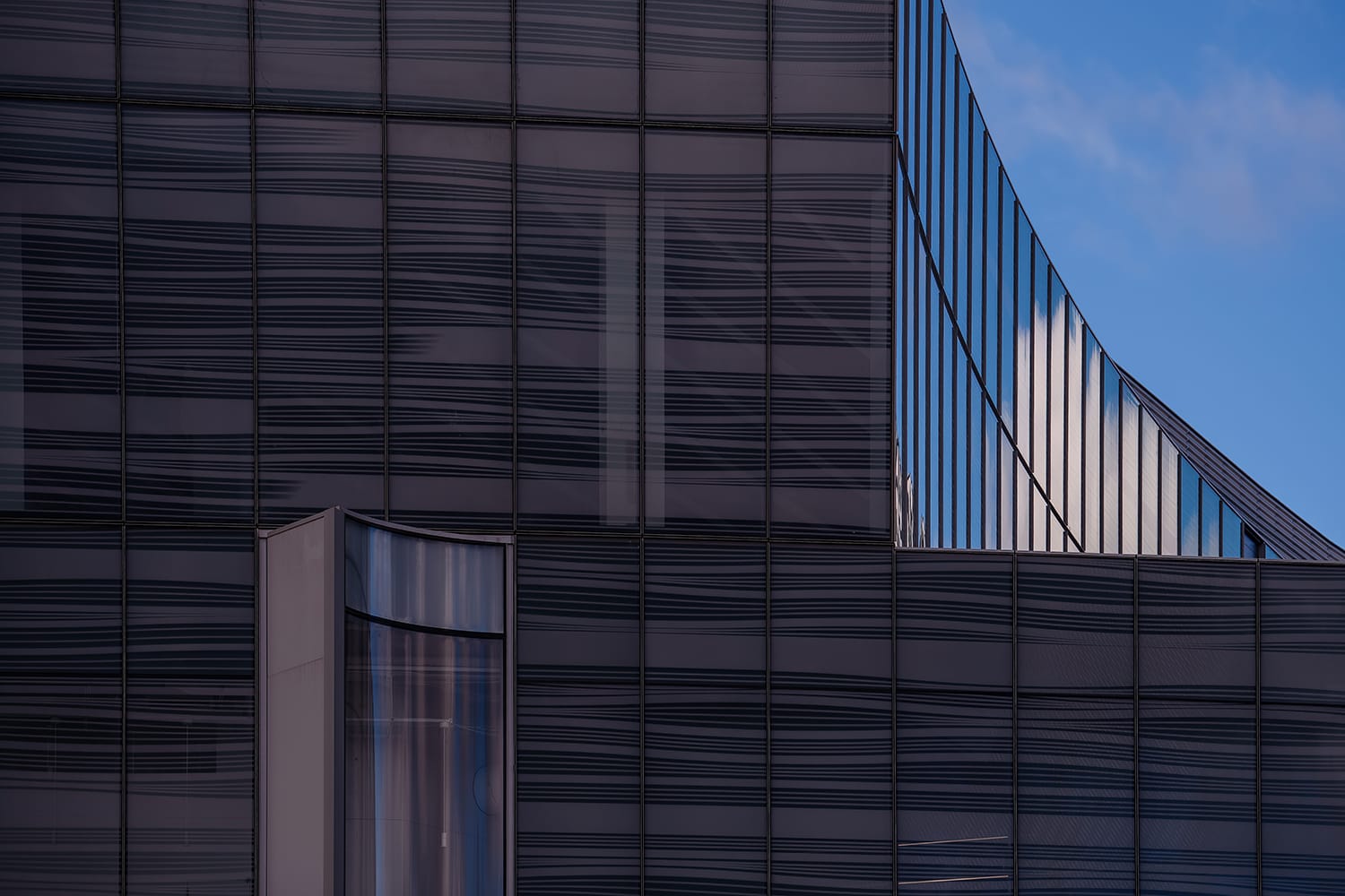 The exterior of “The Hub” contains a sweeping glass facade. Where the old headquarters three miles away on Michigan Ave. was more than a dozen stories of straight lines — this is far more interesting.