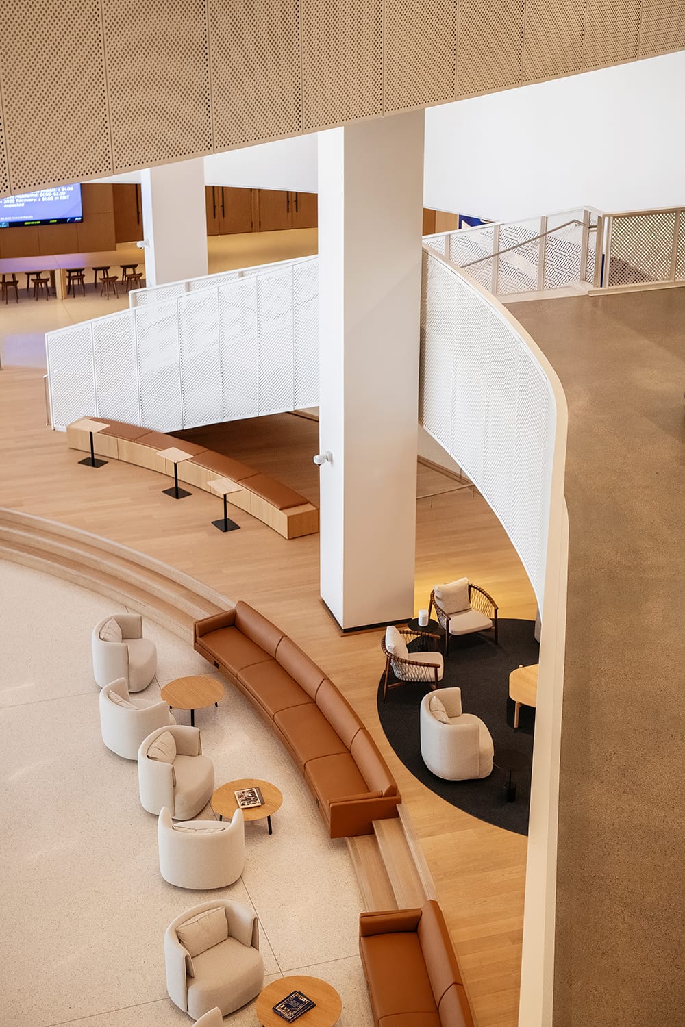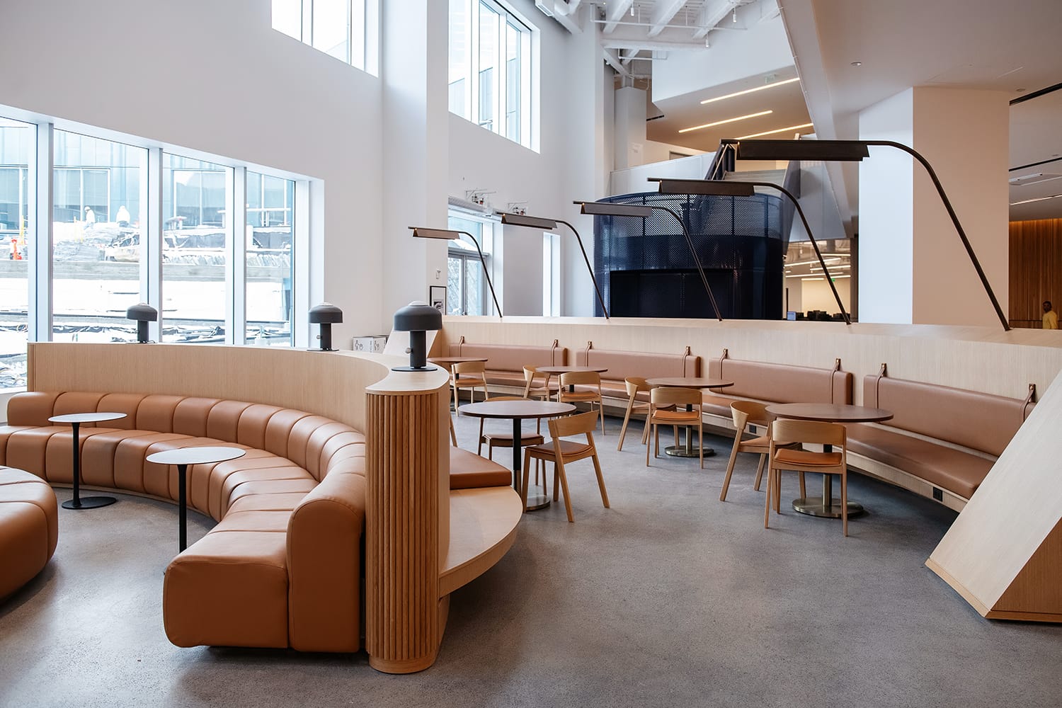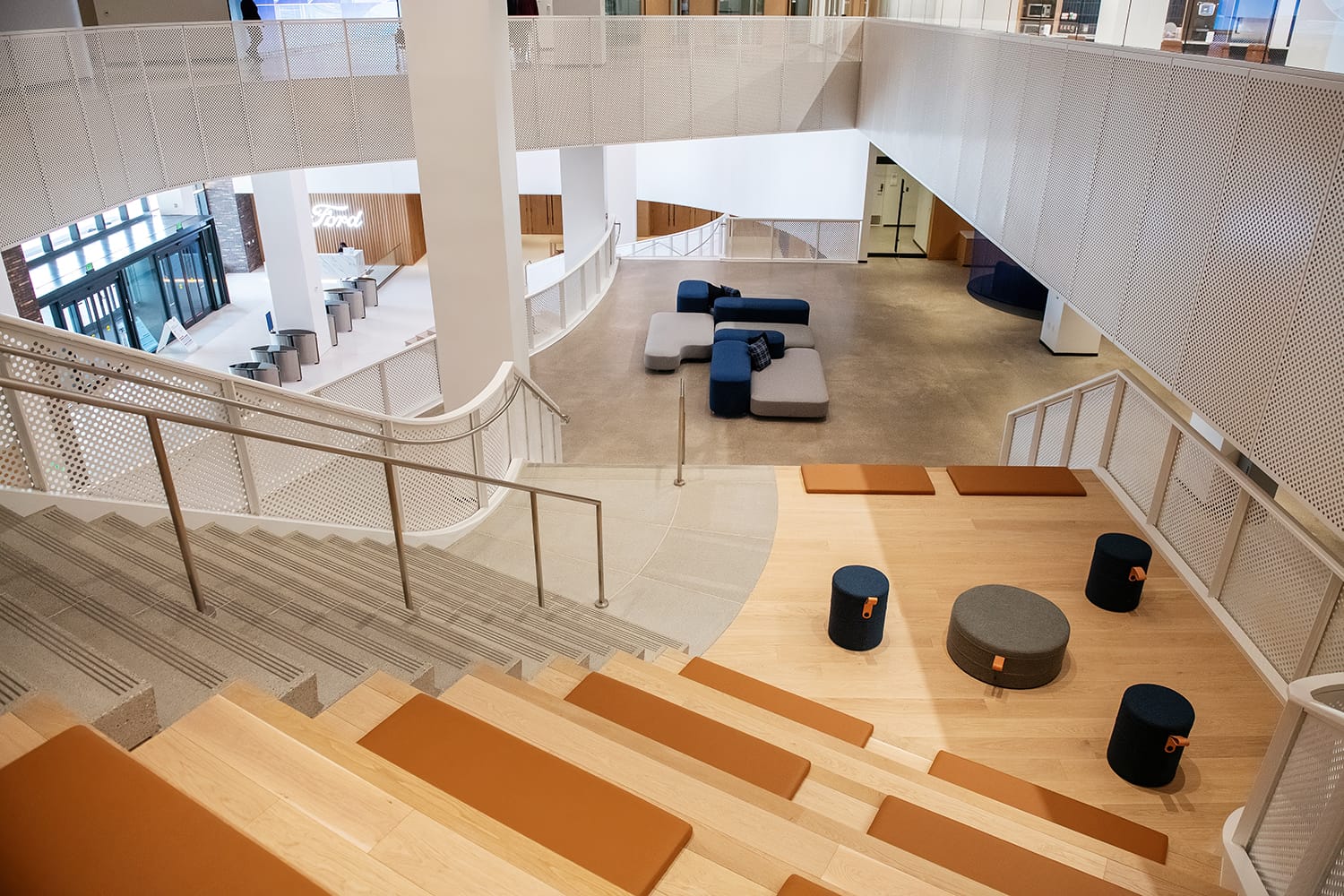 Of course there are elevators available, but connecting the floors throughout is a series of staircases to areas that encourage collaboration.
