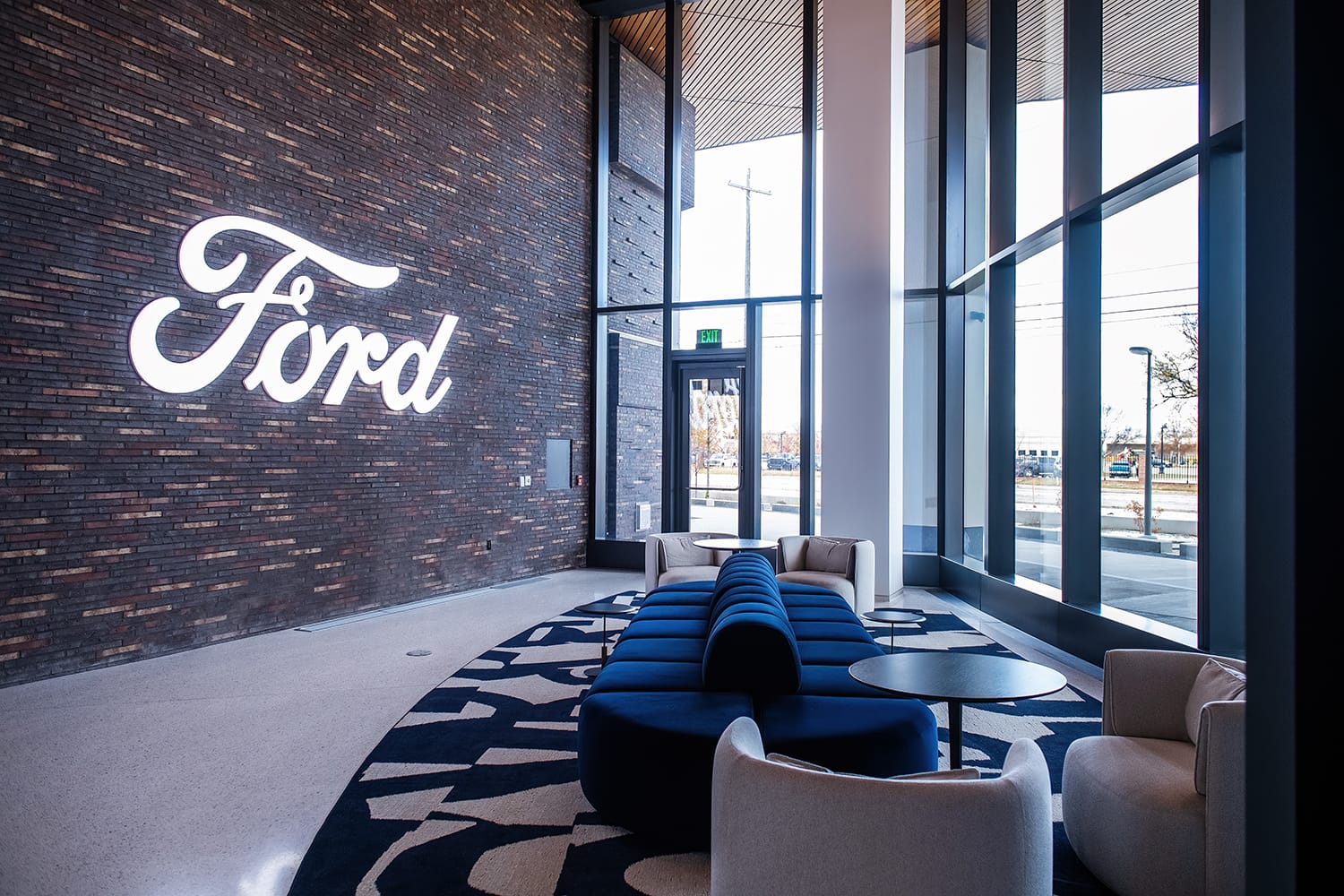 Another thing Ford did was create their own furniture sets, from rug designs to seating. They’re used throughout the company properties.