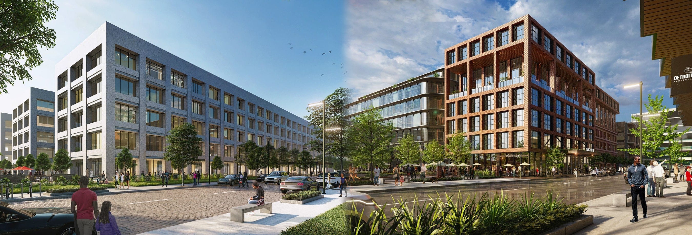 Tom Gores and his team will develop the old Burroughs HQ — now One Ford Place — into a 610,000 sq. foot residential complex, and also build a new mixed-use residential and retail complex. Thankfully, according to renderings, the sea of parking next to that will be redone into something much more practical and a better use of space.