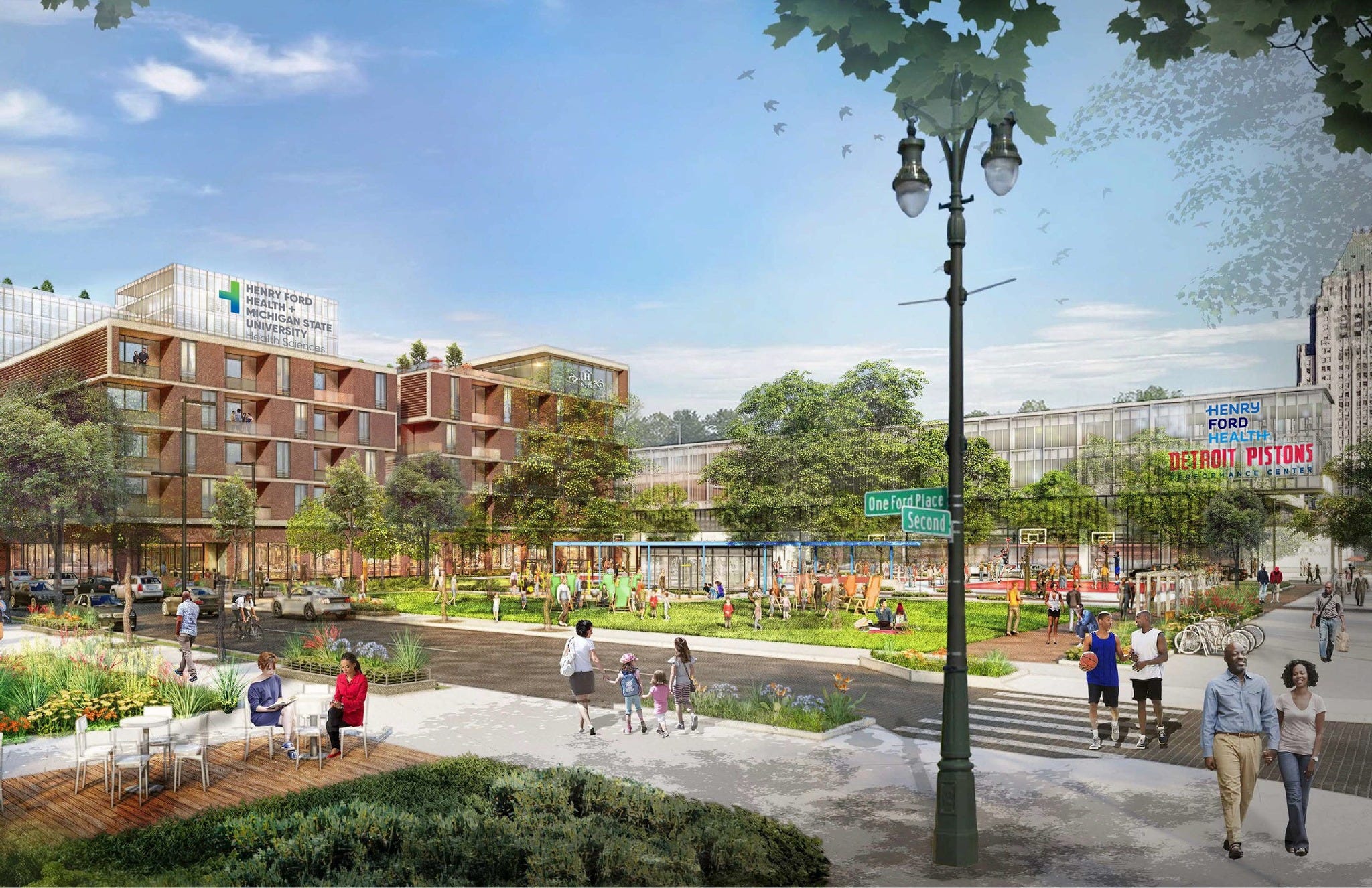 The project also includes about two acres of dedicated green space, basketball courts, and a research facility with Michigan State University. That facility will focus on cancer, neuroscience, women's health, imaging, and public health.