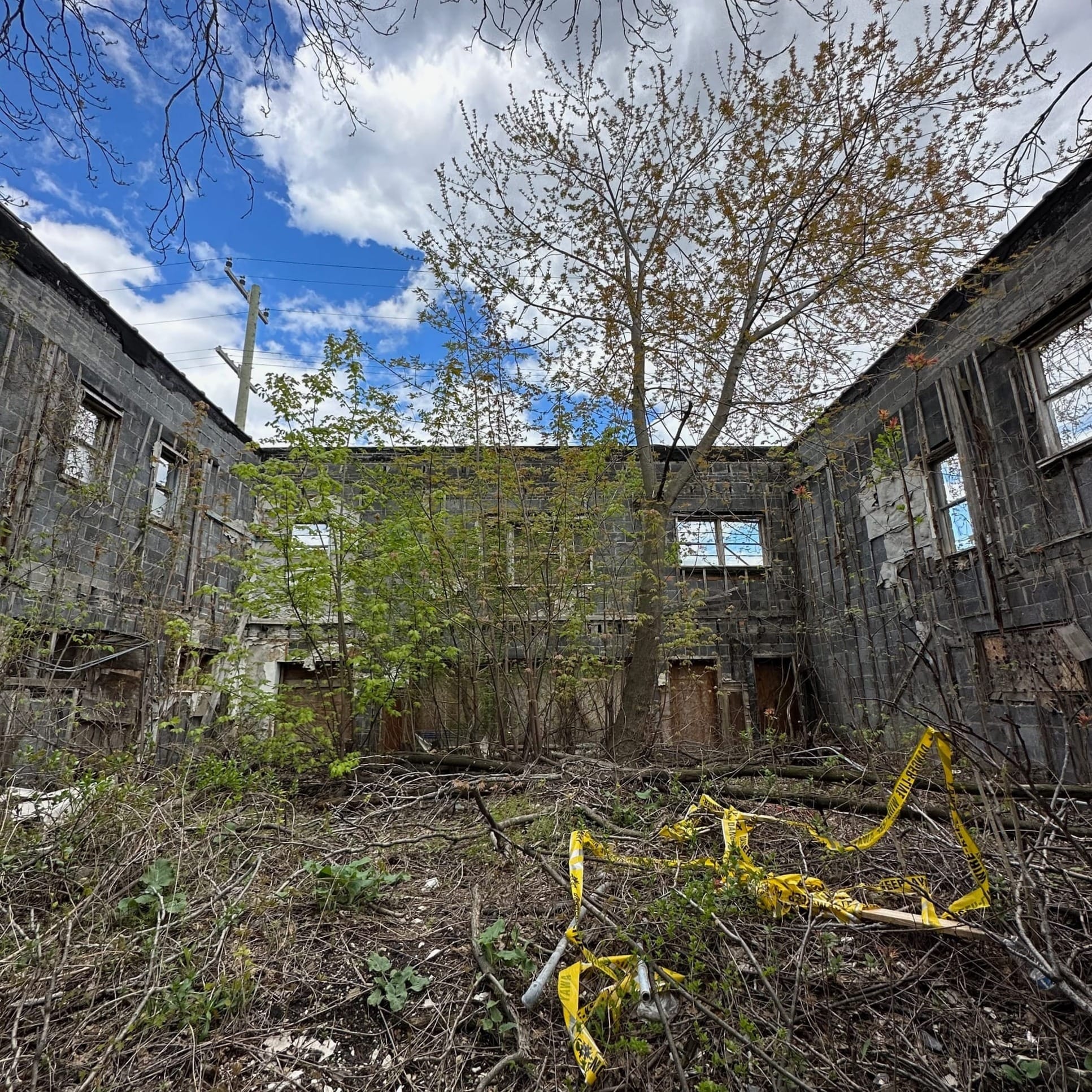 ...even as I live across the street from a pair of abandoned buildings, including one that's just a shell with a forest growing inside.